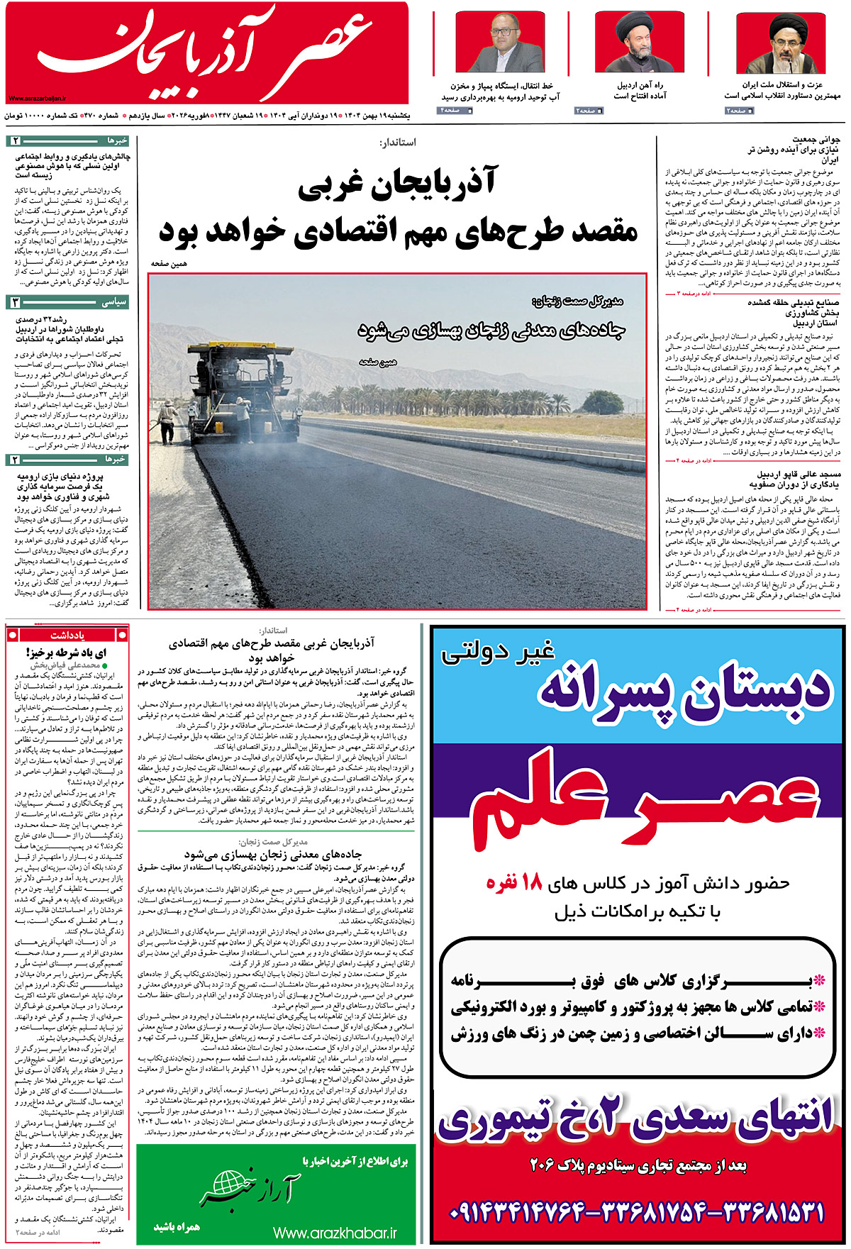 عصرآذربایجان- بهره برداری از پروژه گازرسانی به روستای زنگکان و آیین آغاز عملیات اجرایی احیای بزرگترین معدن تیتانیوم منطقه همزمان با ایامالله دهه مبارک فجر در ارومیه برگزار شد.